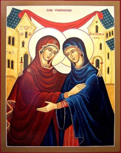 Il y a deux aspects de la scène de la Visitation à considérer. Le premier est que tout intérêt personnel de Marie ou d’Élisabeth est mis de côté. Toutes deux avaient de bonnes raisons d’être très préoccupées par leur grossesse et tout ce qu’apporte une nouvelle vie. Les deux femmes avaient le droit de se concentrer sur elles-mêmes pendant un certain temps alors qu’elles apportaient des ajustements radicaux à leur vie quotidienne. Marie tend la main vers sa cousine pour l’aider et être aidée par elle. Ces deux grandes femmes bibliques se sont consolées entre elles, ont partagé leurs histoires, au moment où elles firent l’expérience d’une vie nouvelle en elles : Élisabeth après ses longues années de stérilité avec cette grossesse subite, et Marie, après sa rencontre avec le messager céleste, créant une situation maritale et une grossesse toutes deux « irrégulières ».