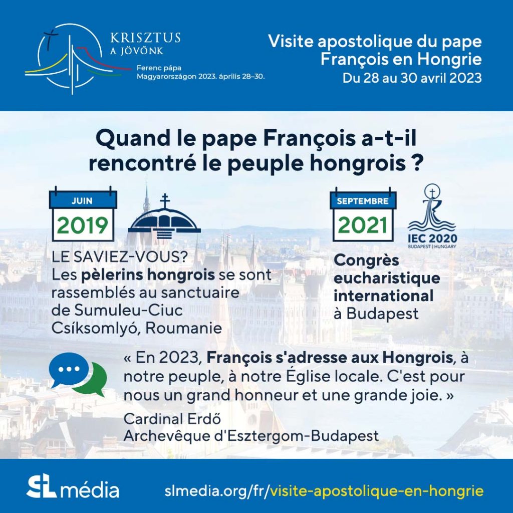 Le pape François effectuera son 41e voyage apostolique à l'étranger en Hongrie du 28 au 30 avril. Le Saint-Père se rendra à Budapest pour rencontrer le président, le premier ministre, des membres de la société civile et des représentants du monde universitaire et culturel. Le thème de la visite est "Le Christ est notre avenir".